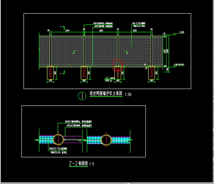 学校外围勾花网围栏网专业生产厂家1、勾花网围栏网立柱采用Φ80*3.0mm镀锌钢管,表面静电喷涂墨绿色防腐工艺处理。2、勾花网围栏网横管采用Φ50*3.0mm镀锌钢管,表面静电喷涂墨绿色防腐工艺处理。3、勾花网围栏网网片采用Φ3.0mm镀锌钢丝网片,表面PE包塑墨绿色防腐工艺处理。4、勾花网围栏网网孔45*45mm,网孔采用编织勾花网菱形网孔生产工艺。5、勾花网围栏网整体安装高度2.0米,立柱中心距间隔3.13米。