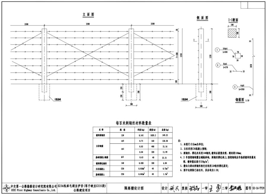 3、刺钢丝、绑扎丝采用14#钢丝,镀锌后裹塑处理,刺间距100mm。