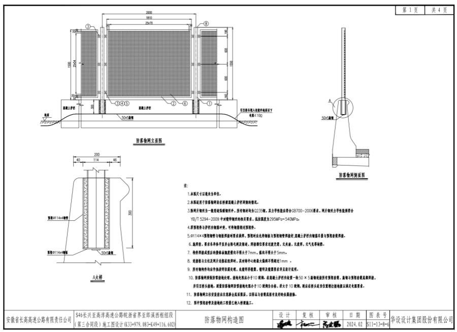 S46长兴至高淳高速公路皖浙省界至郎溪西枢纽段防落物网生产厂家