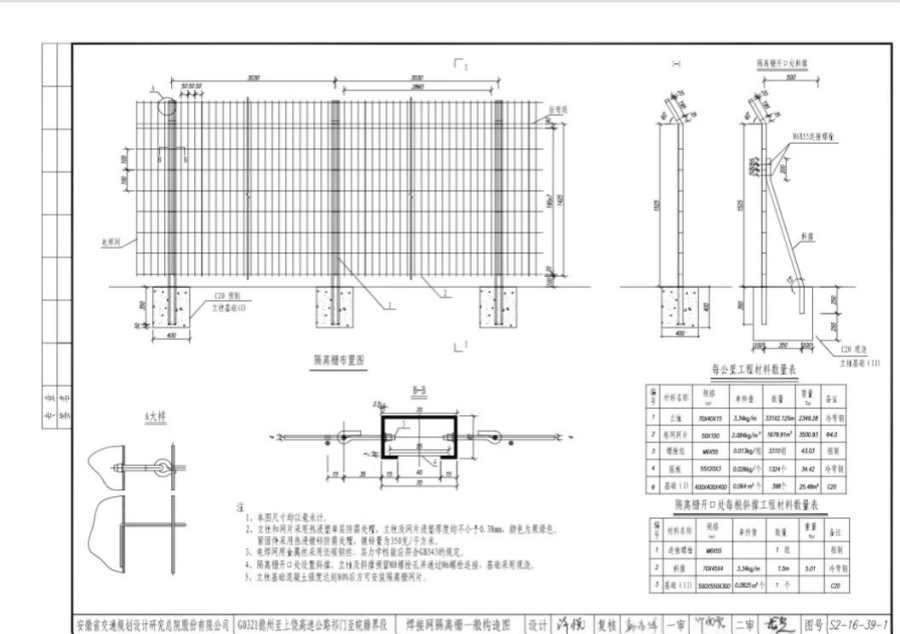 4、隔离栅开口处设置斜撑,立柱及斜撑预留M8螺栓孔并通过M6螺栓连接,基础采用现浇。